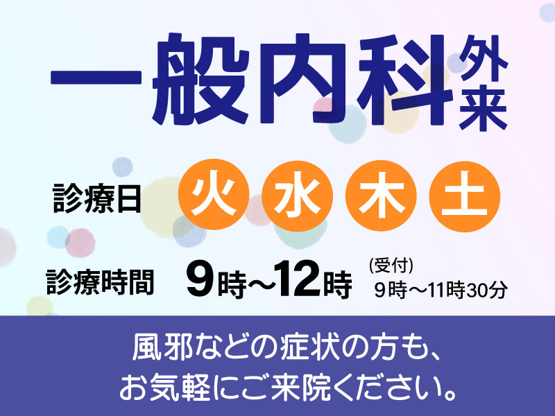 | 月曜日~土曜日 9:00~12:00 (最終受付11:30) |