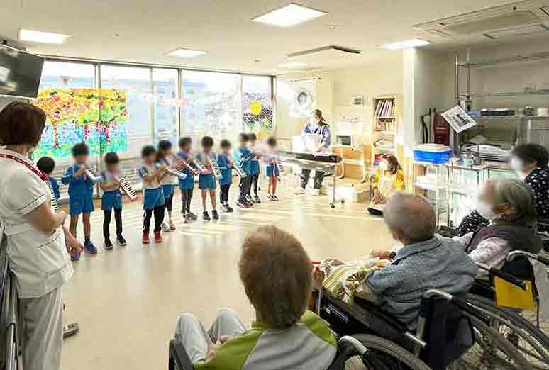11/20関連施設の「阪奈中央こぐま園」の年長園児さんたちが、病棟で発表をしてくれました。
