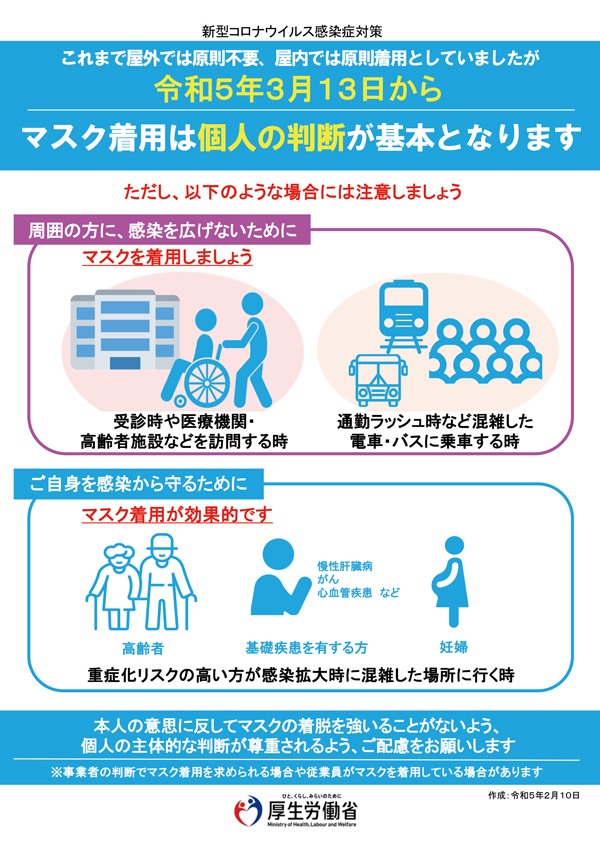マスクの着用が2023年3月13日から個人の判断に委ねられることになりましたが、