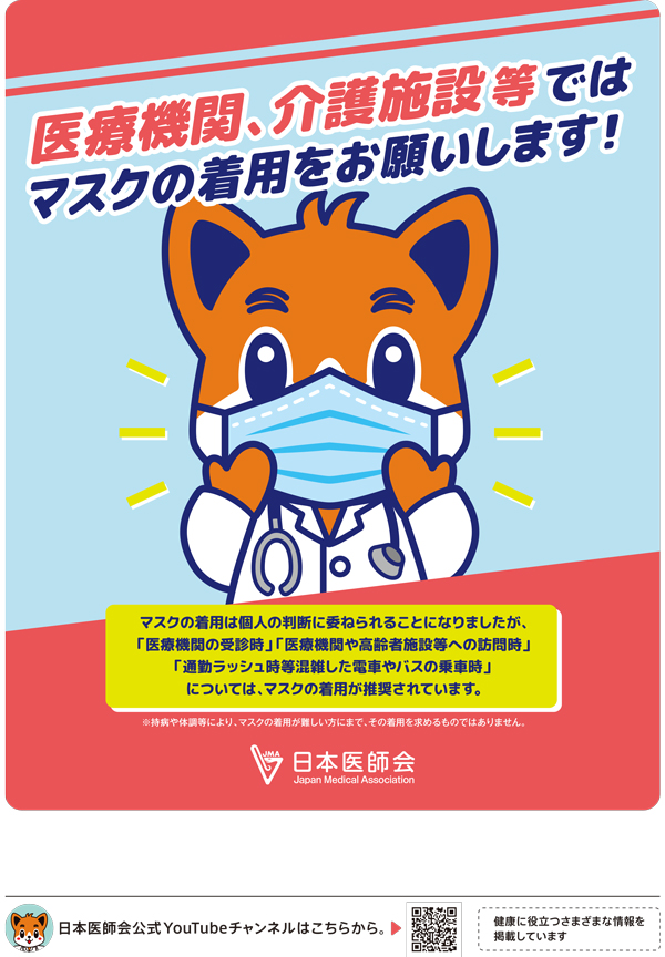 当院では高齢者等重症化リスクの高い方への感染を防ぐため、来院時はマスク着用を