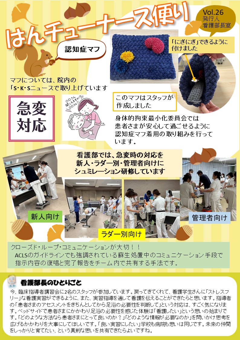 常に患者さまの立場に立ち、生命・人権を尊重した思いやりのある質の高い看護を提供します。