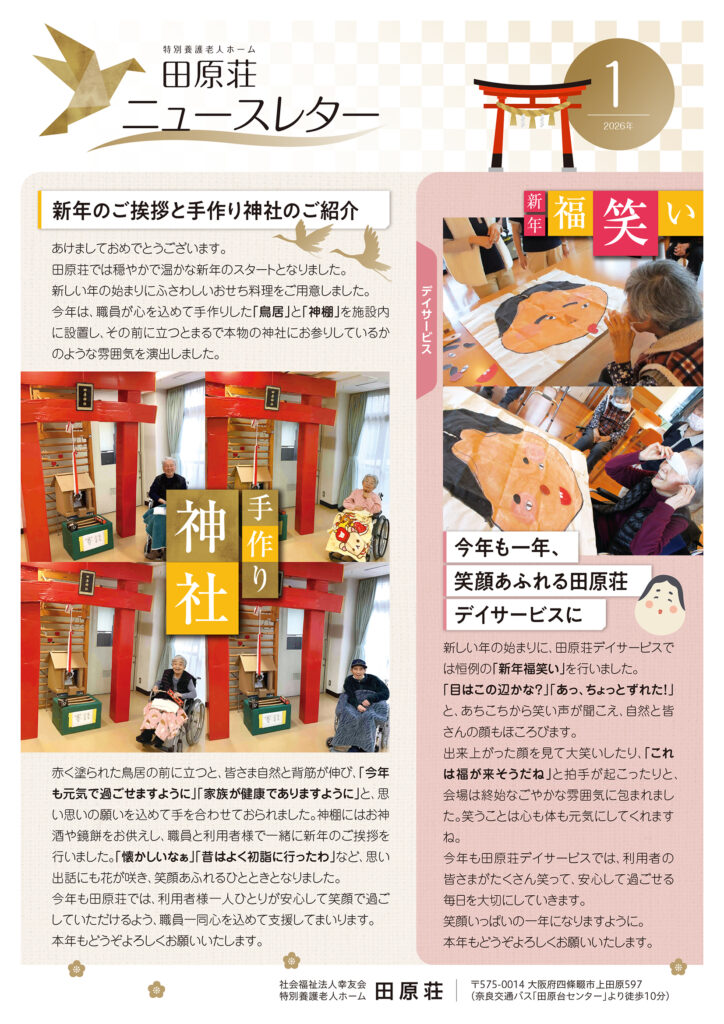 スタッフによる広報誌「田原荘ニュースレター(2026年1月号)」を公開いたします。