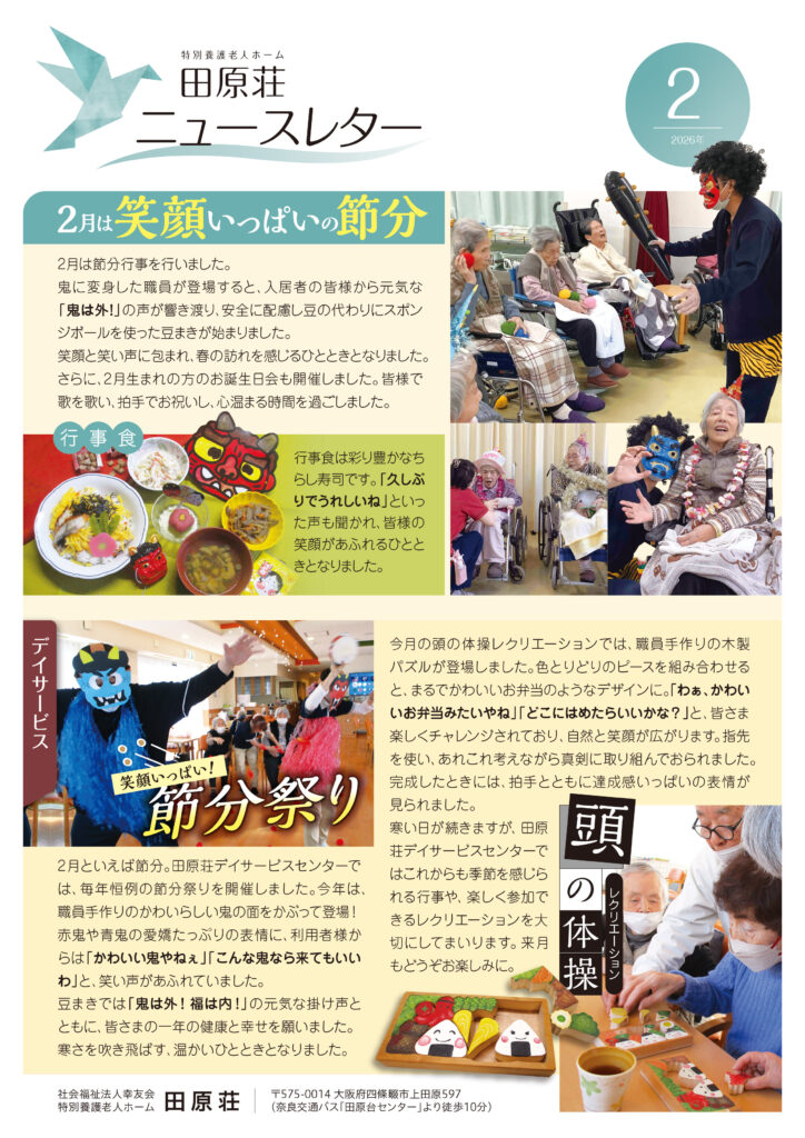 スタッフによる広報誌「田原荘ニュースレター(2026年2月号)」を公開いたします。