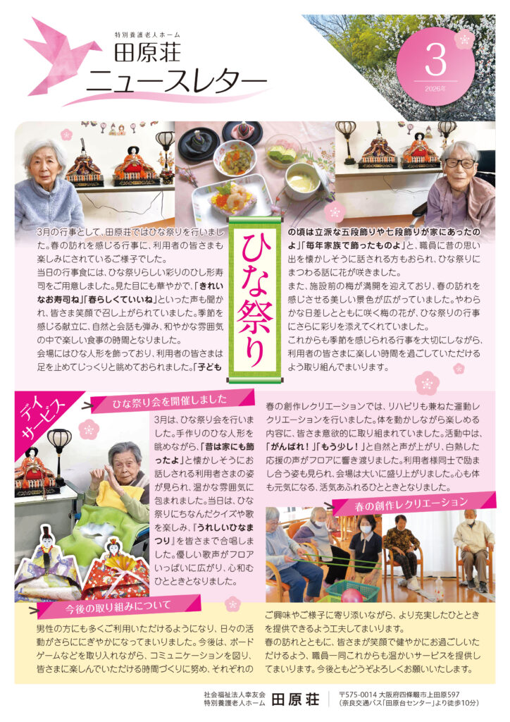 スタッフによる広報誌「田原荘ニュースレター(2026年3月号)」を公開いたします。