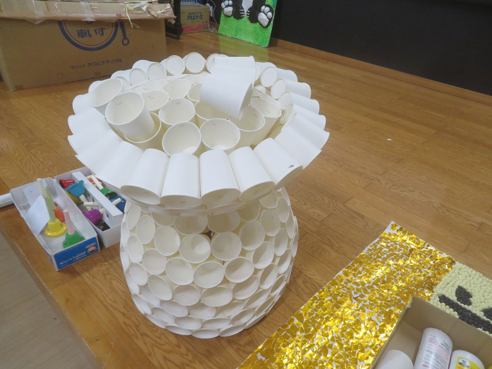 材料は紙コップとホッチキス❗️