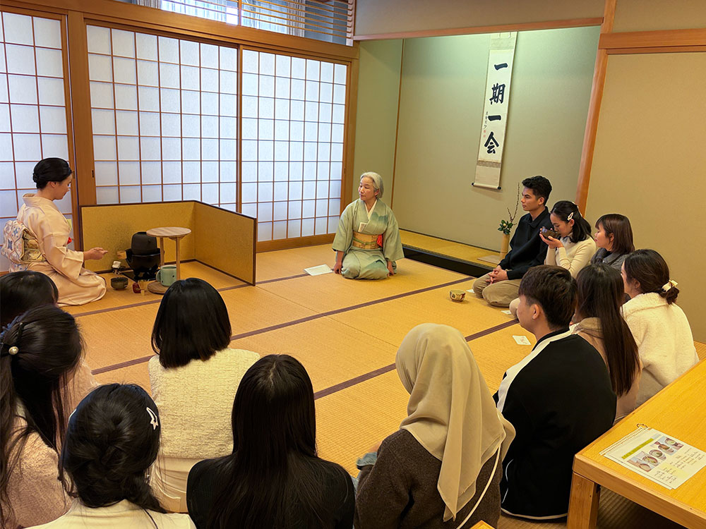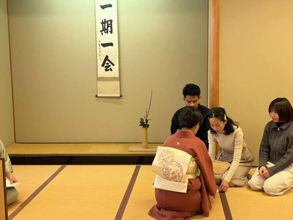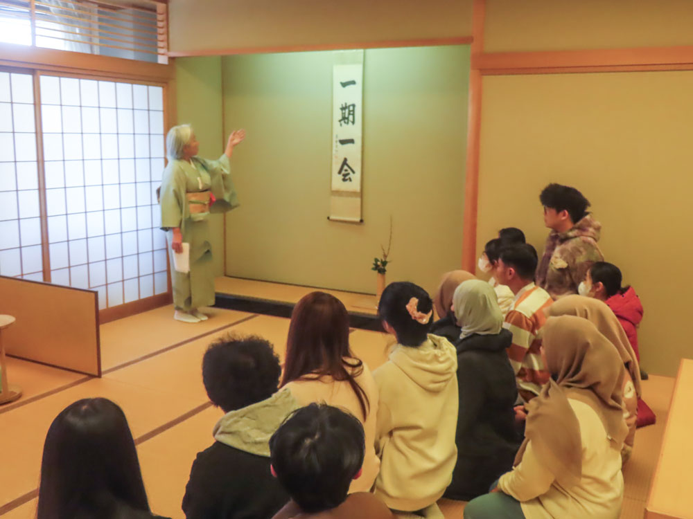 留学生達は、茶室の静かな空気に包まれながら、茶道が持つ美意識や精神性に触れる体験となりました。
