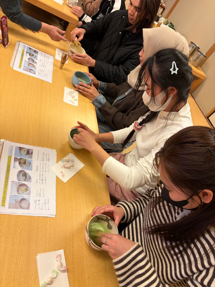 留学生一人ひとりが好きな茶器を選び、茶筅を使って自分でお抹茶を点てて味わいました✨