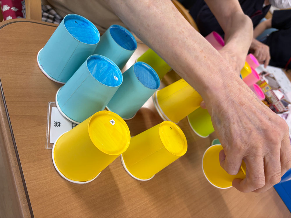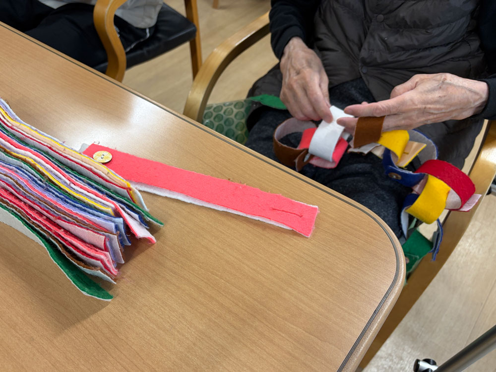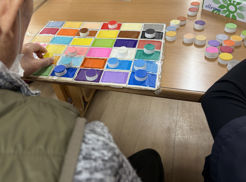 デイケアの午後のプログラムでは、色と形を手で扱いながら進める活動をおこなっています🖐🏻🌈